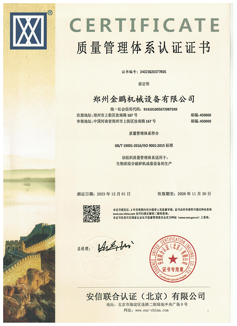 金鵬擁有多年大型木材粉碎機、秸稈粉碎機的生產經驗和技術,并針對國內生物質發電廠客戶的特點,自主研發設計生物質原料預粉碎系統,已經成長為專業的大型木材粉碎設備提供商和生物質發電廠燃料粉碎預處置行業的優質供貨商。公司擁有雄厚的技術團隊、精良的加工設備、先進的加工工藝及高精密的專業檢測設備,能夠為客戶專業打造出高品質產品。