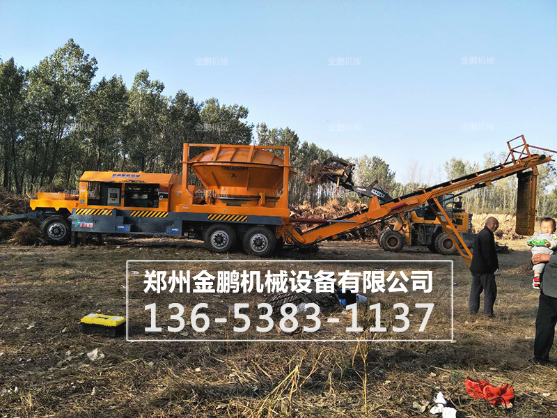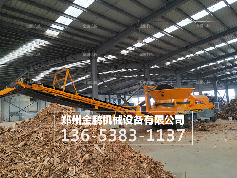 其主要是靠沖擊能來完成破碎生物作業的。錘式大型移動木材破碎機工作時,電機帶動轉子作高速旋轉,生物均勻的進入大型移動木材破碎機腔中,高速回轉的錘頭沖擊、剪切撕裂生物致生物被破碎,同時生物自身的重力作用使生物從高速旋轉的錘頭沖向架體內擋板、篩條,在轉子下部,設有篩板、粉碎生物中小于篩孔尺寸的粒級 通過篩板排出,大于篩孔尺寸的生物阻留在篩板上繼續受到錘子的打擊和研磨。